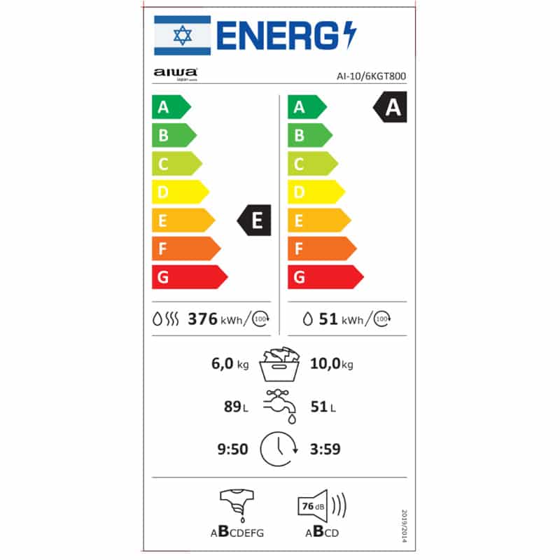 דף הבית » חנות » מכונות כביסה ומייבשים » מכונת כביסה ומייבש משולבת 10/6 ק"ג דגם AI-10/6KGT800